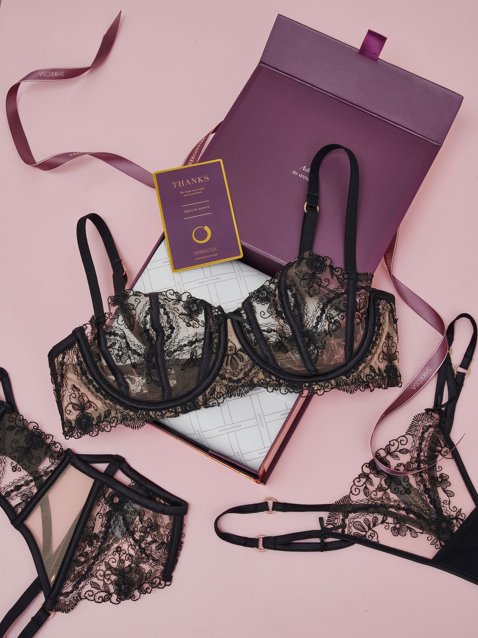 Available in Black and Blackberry, the Tattoo Contour Bra pairs effortlessly with the collection’s Thong or Bustier to create a daring yet sophisticated lingerie set.